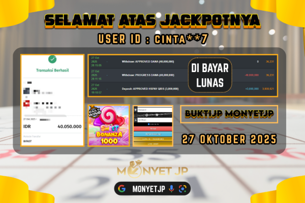 ๐ SELAMAT BESAR ๐๐ฅ BUKTI PEMBAYARAN LANGSUNG KE REKENING MEMBER! ๐ฅ ๐ค DETAIL KEMENANGAN : ๐ฎ Game : Sweet Bonanza…